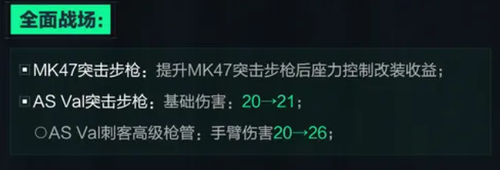 ●鏖战枪管:基础伤害由44点提升至46点,护甲伤害由46点提升至47点。